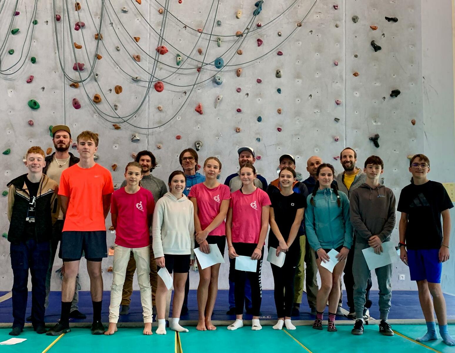 Il aura fallu 15 jours intensifs d'ouverture de voies et des Ecocups venues d'ailleurs pour qu'ait lieu la compétition des jeunes de 14-15 ans des clubs d'escalade de Maîche, Morteau, Pont de Roide et le Russey. Mais enfin tout le monde était là le samedi 15 novembre au matin (enfin presque : coucou Pont de Roide !) pour grimper en tête et en moulinette les 10 nouvelles voies du gymnase du Mont Miroir. En tout, dix jeunes grimpeurs se sont affrontés pour récupérer le plus de points possibles sous l'oeil attendri - ou non - des adultes venus encadrer tout ce petit monde. Il est d'ailleurs intéressant de noter que, suite à une campagne musclée de recrutement en ligne, il y eut deux fois plus d'encadrants que de compétiteurs. Merci encore à eux ! La compétition fut gagnée haut la main par Adel, l'unique représentant de Morteau qui nous a tous ébloui. Cependant, Aaron et Arsène de Verticool ont également réalisé une très belle performance en complétant le podium.