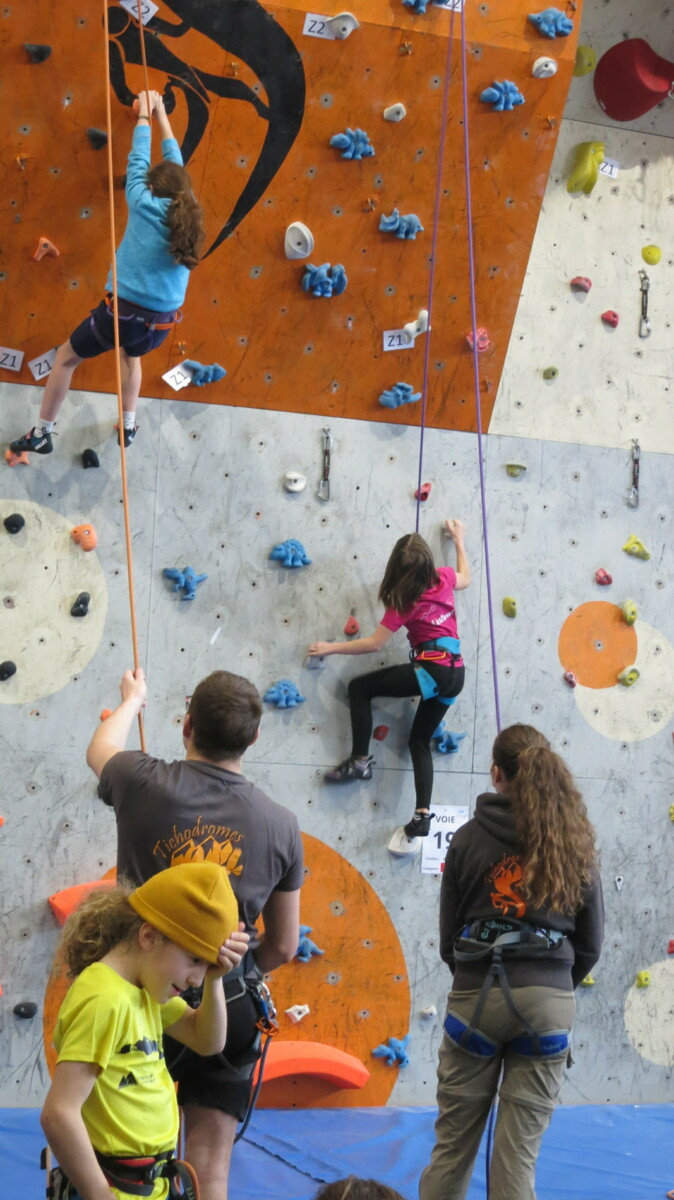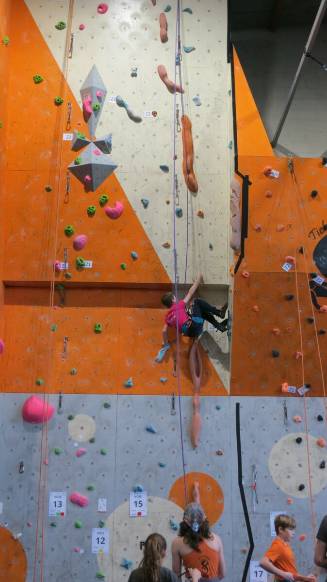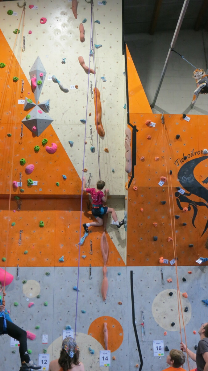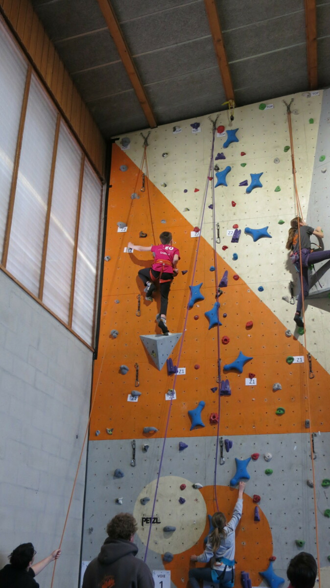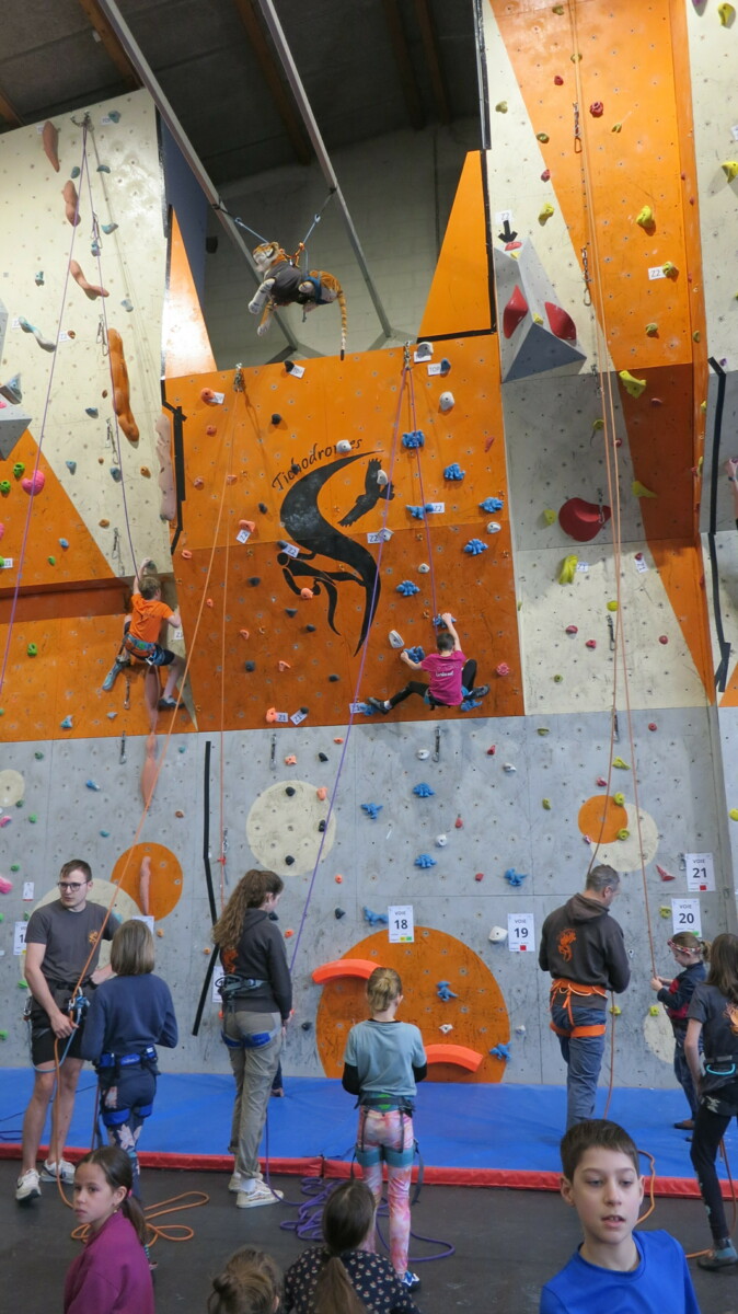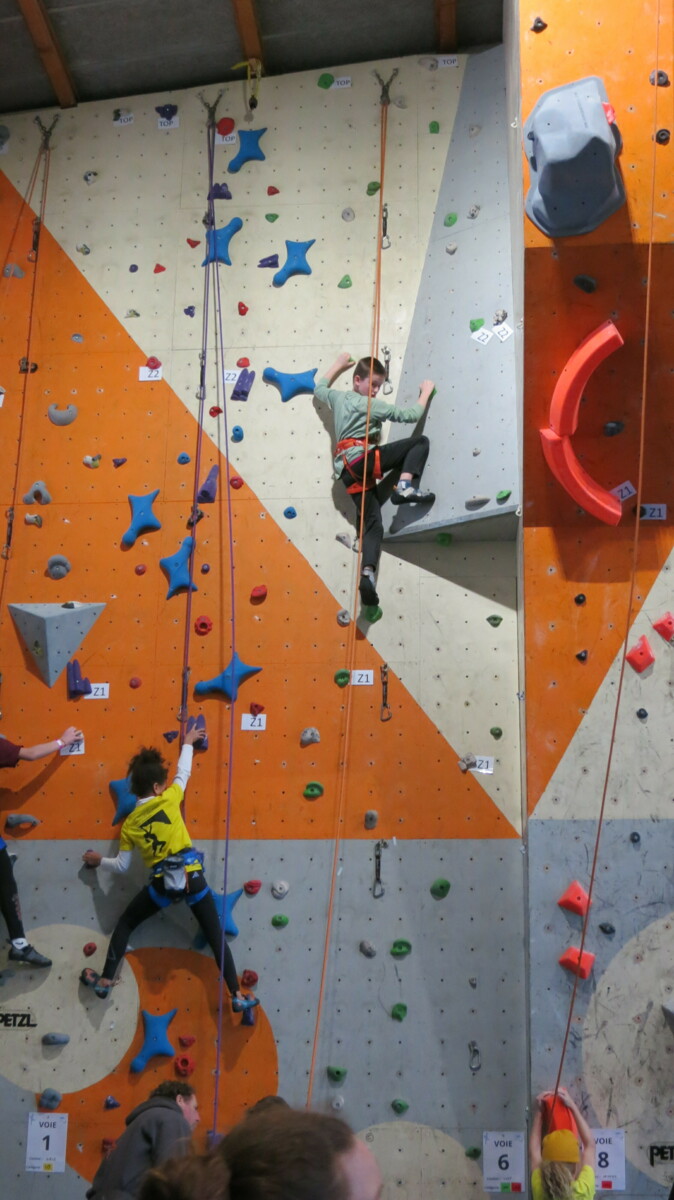 Nos jeunes grimpeurs verticooliens, peu familiers de cette overdose de dévers, se sont néanmoins battus comme des lions tout au long de la journée. Et ce n'est pas la surreprésentation des clubs de Besançon et Valdahon occupant les 2/3 du gymnase qui les aura impressionnés !